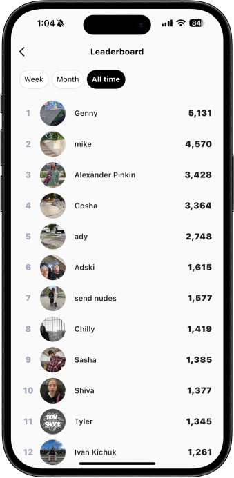 Post your skate videos, gain views, likes, comments, and climb to the top of the leaderboard.